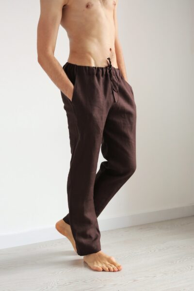Men's linen pants. Natural pants with pockets. Color in the picture – Brown. Natural Linen pants make a luxurious and