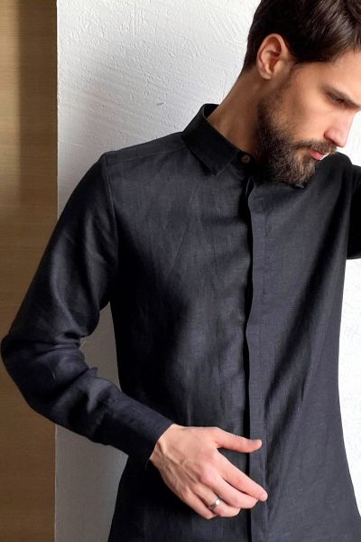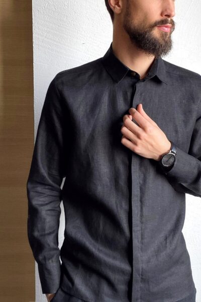 Black linen men's dress shirt. Goog gift for him Comfortable and stylish men's shirt. Made from 100% linen and available