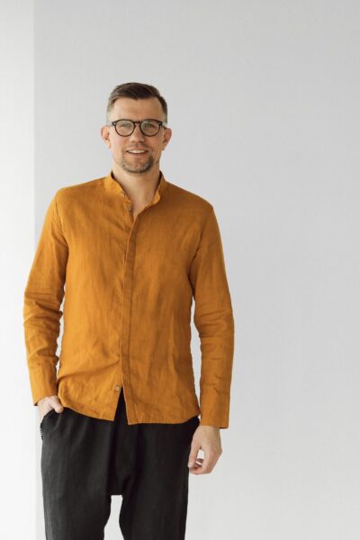 Breathable Linen Shirt Clean Collar Linen for Men Airy Profile