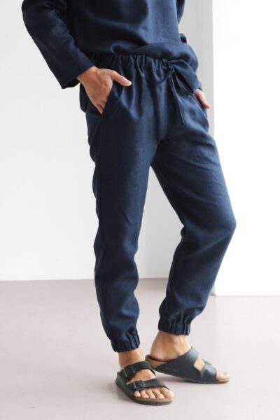 Men's harem linen pants. Color in the picture – Black. Loose-fit pants are made from 100% Linen and available in