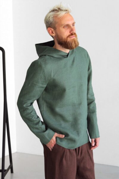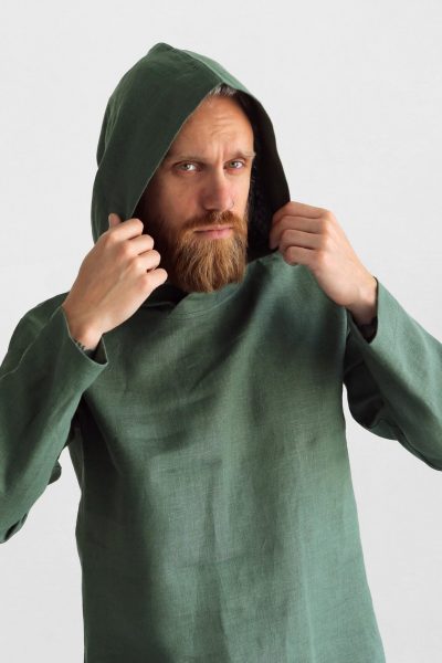 Men's linen hoodie Color in the picture – Green This hoodie is made from 100% Linen and available in a