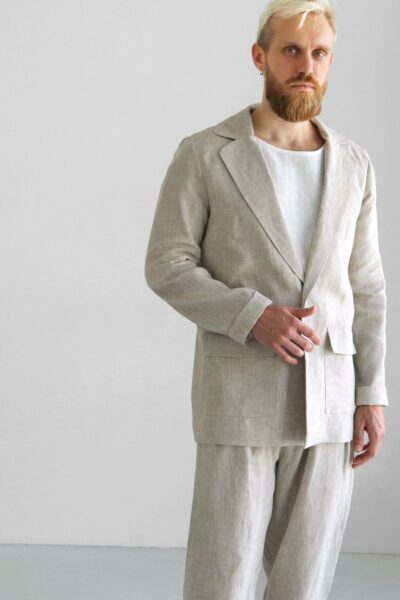 Men's linen Jacket. Wedding Blazer. Color in the picture – Beige (not colored). Men’s Linen Jacket made from 100% Linen