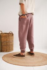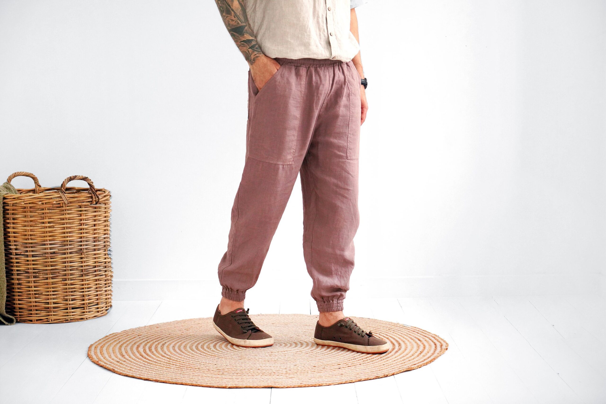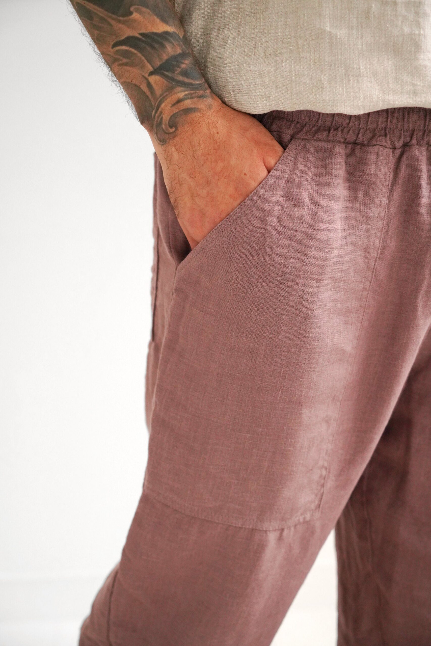 Drawstring Linen Pants Beige Mood Linen for Men Structured Profile