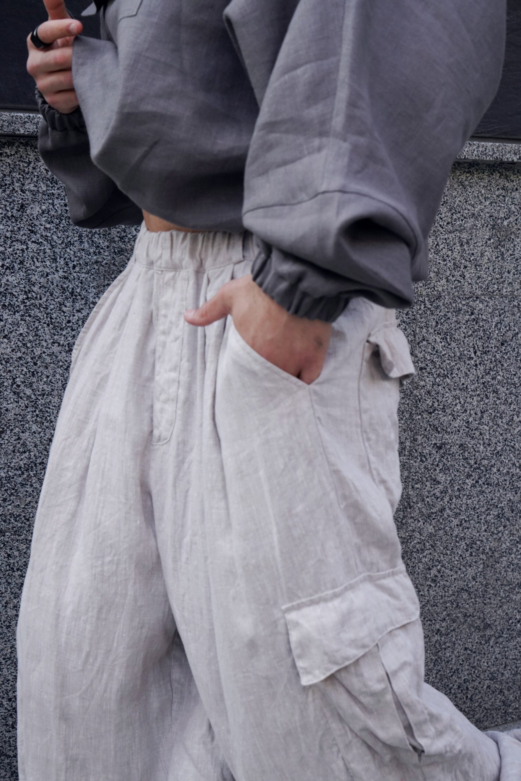 Loose-fit pants are made from 100% Linen and available in a variety of colors.