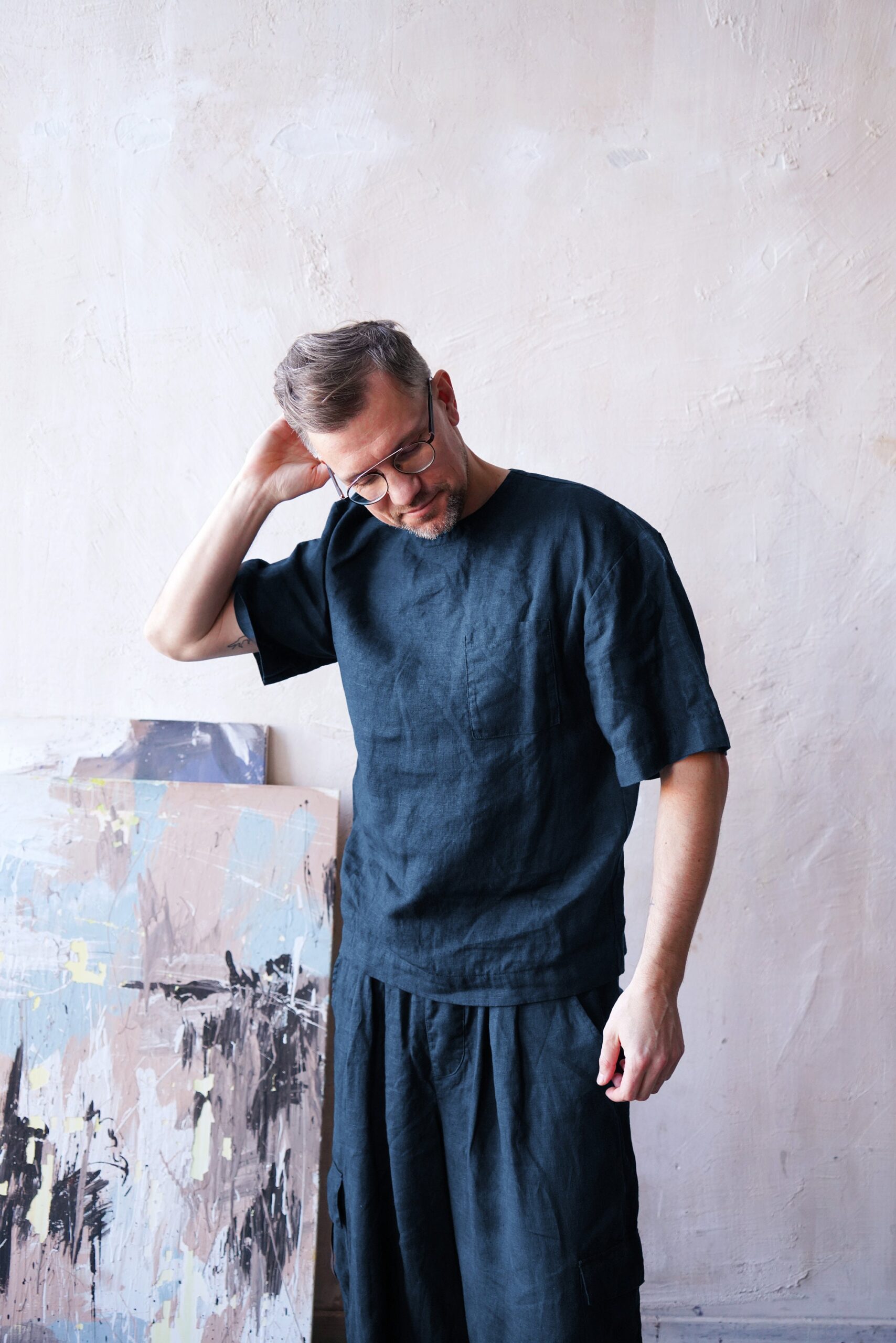 Comfortable and stylish men's t-shirt. Natural linen. The fabric is natural and takes the body shape, over time it becomes softer. Men’s Linen T-Shirt makes a luxurious and functional gift for that special man in your life.