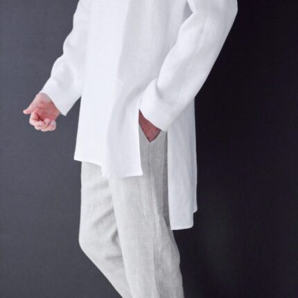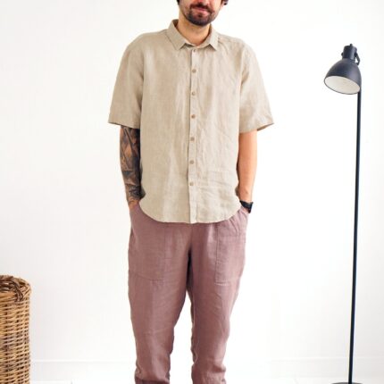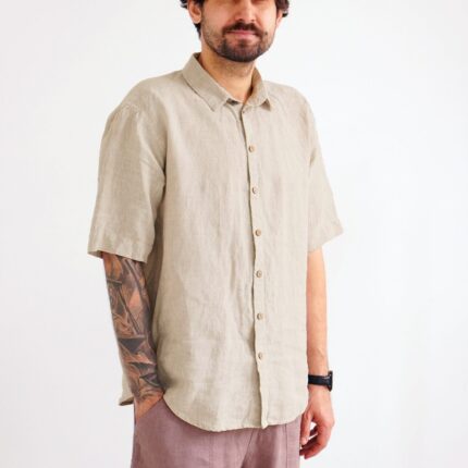 Half Button Linen Shirt Stonewashed Look Linen for Men Contemporary