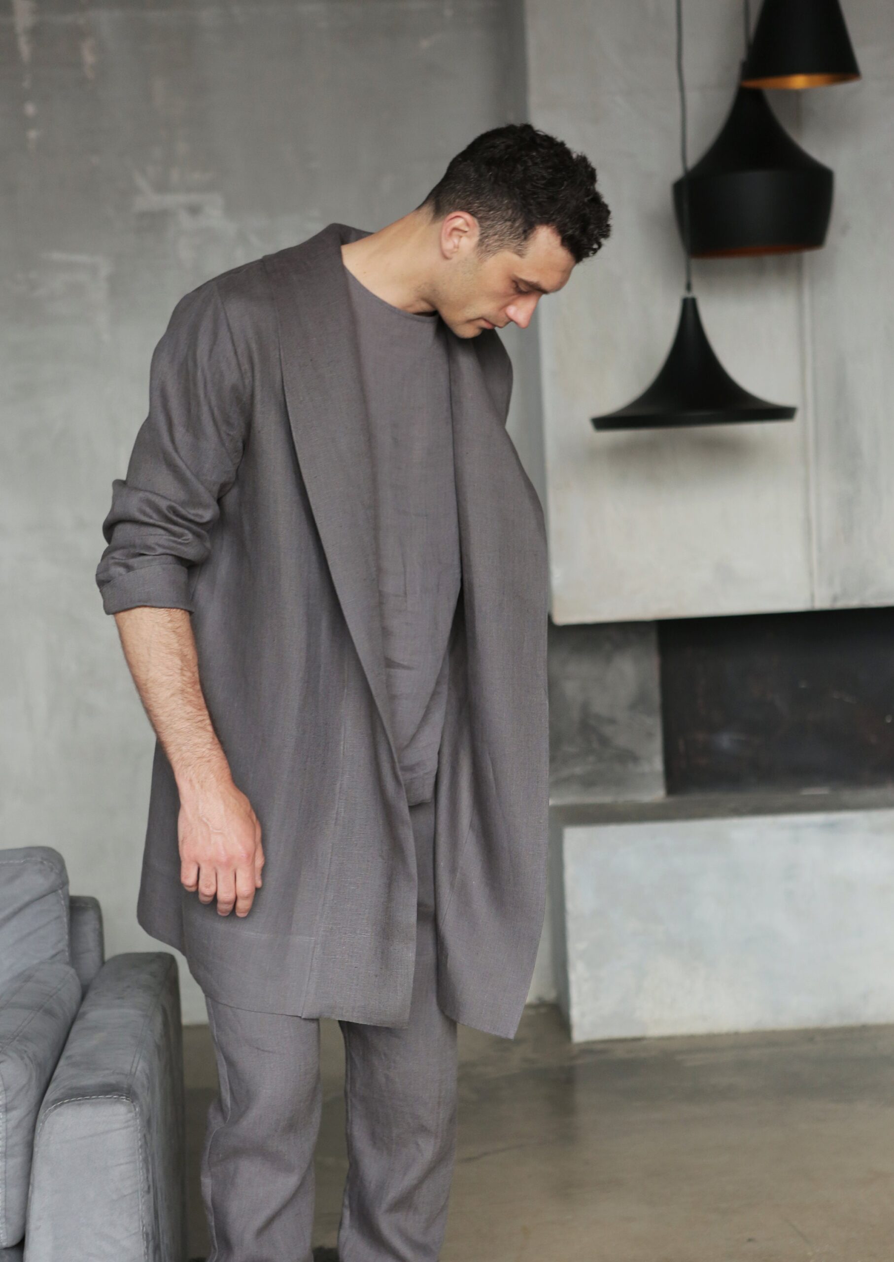 Men’s Linen Trench made from 100% Linen and available in a variety of colors. Wear it as a linen coat, summer cloak, free breed jacket. Perfect for spring – autumn weather. The cut of our clothes coined so that it can look appropriate, both on the street and at home.