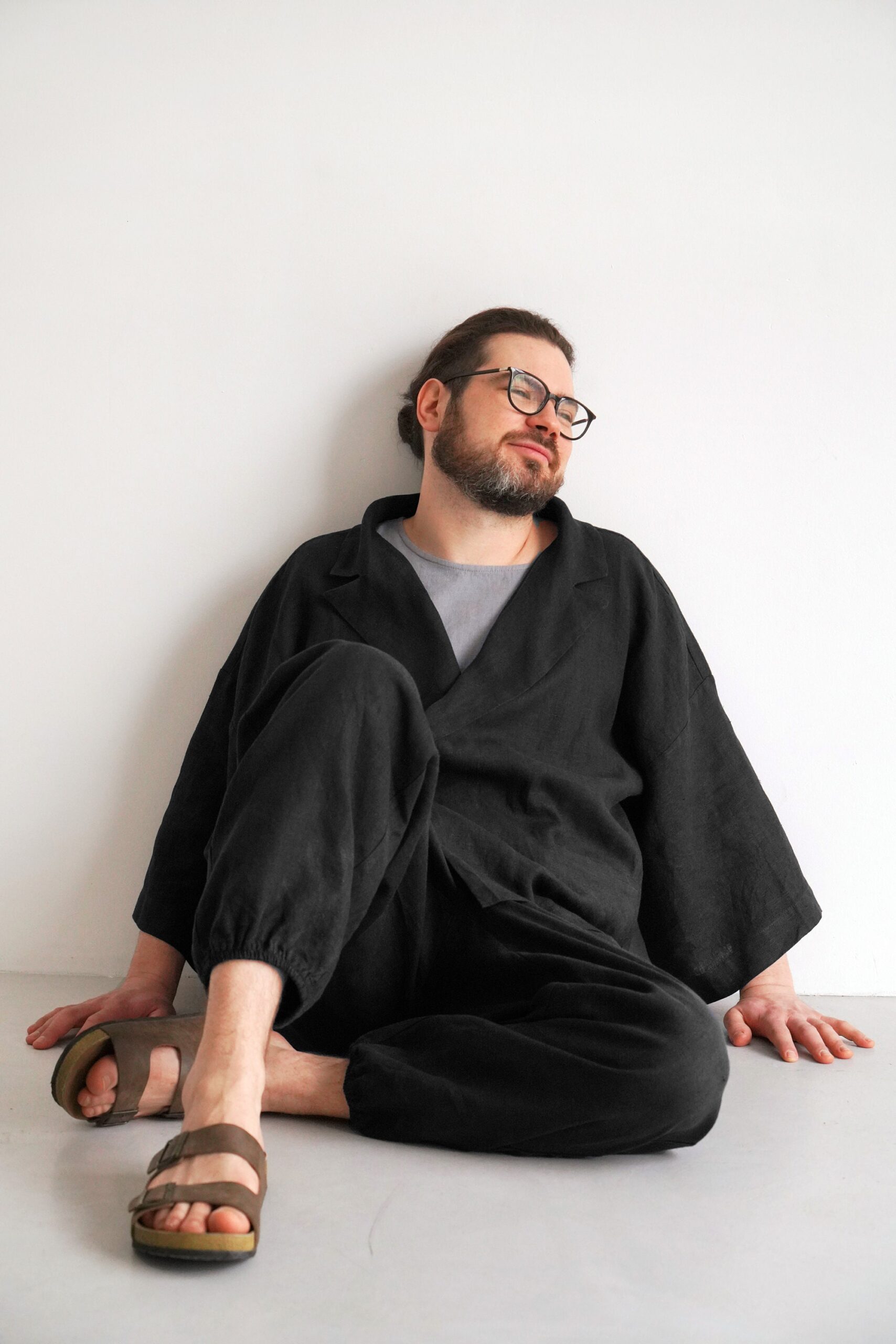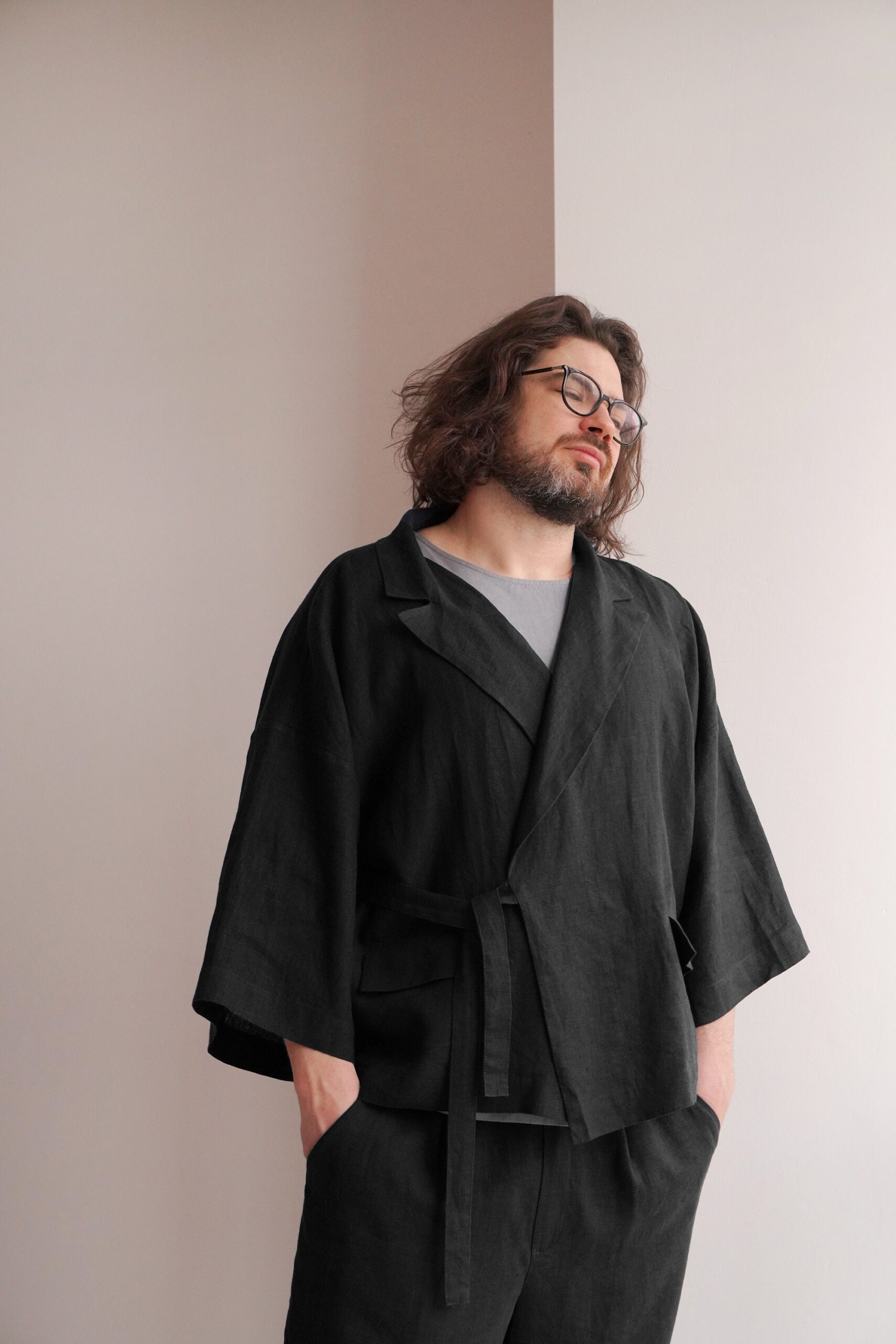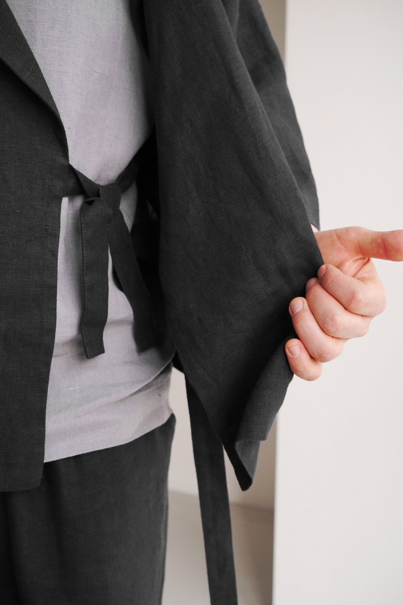 Linen Kimono Artisan Detail Linen Fabric for Men Soft Contour Travel Companion
