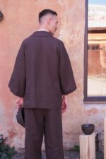 Inspired by kimono-style outerwear, the jacket drapes elegantly while providing comfort and ease of movement. Its loose, wide sleeves and flowy structure make it a perfect layering piece for any season.