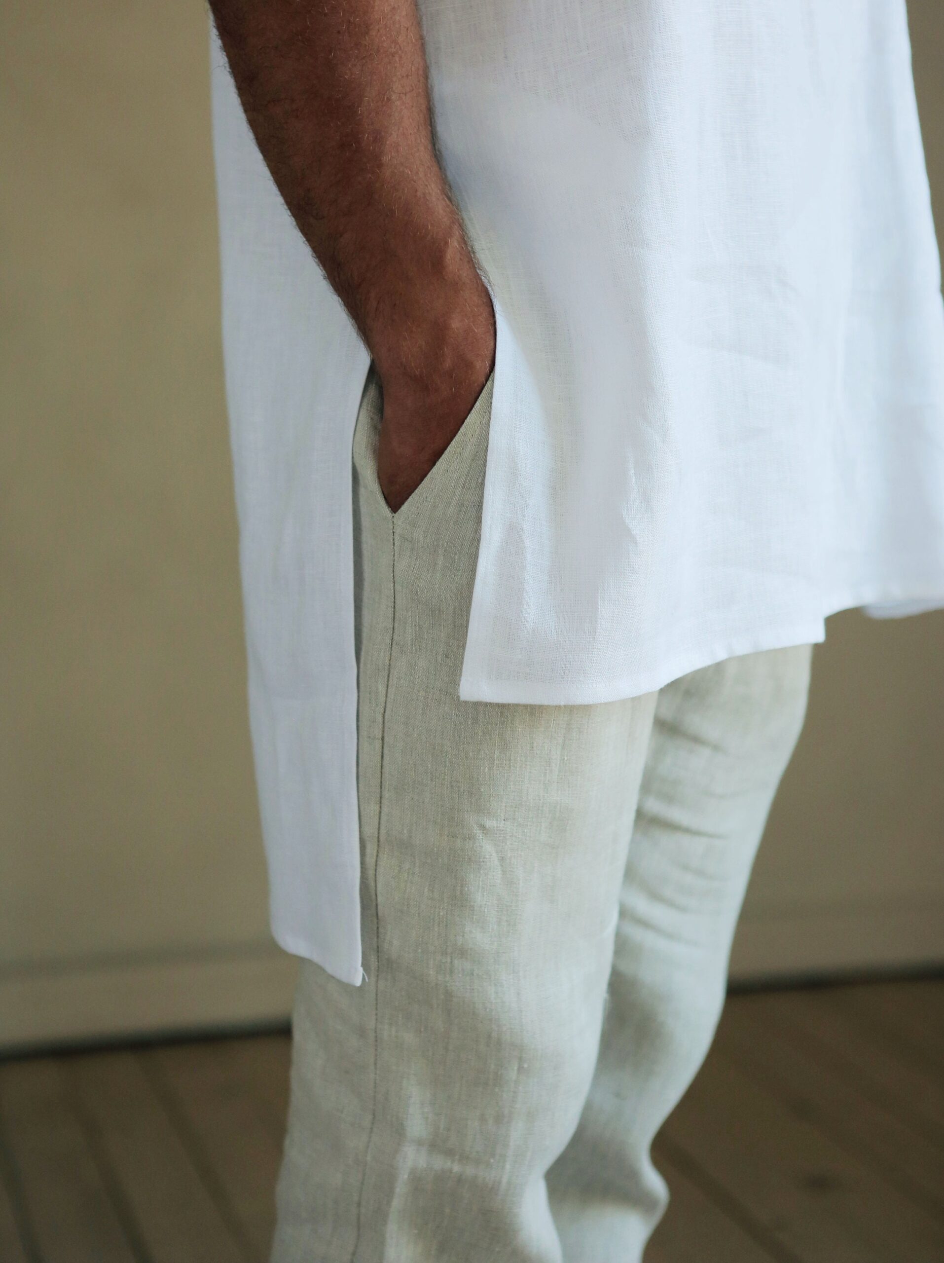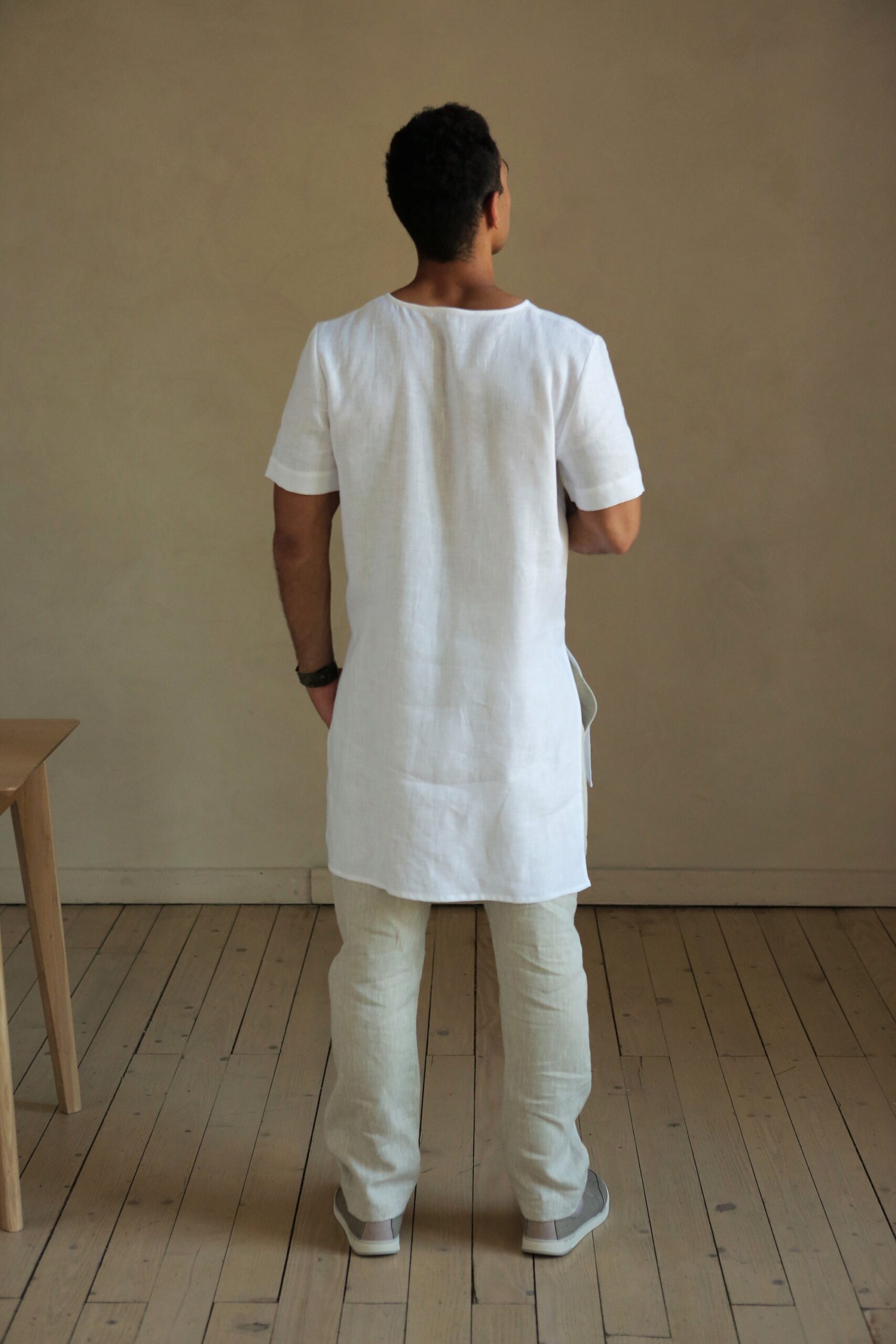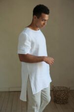 Comfortable and stylish men's white t-shirt. Natural linen. The fabric is natural and takes the body shape, over time it becomes softer. Men’s Linen T-Shirt makes a luxurious and functional gift for that special man in your life.