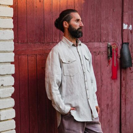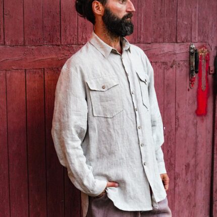 Be the first to review “Linen Short Sleeve Shirt Ivory Finish Linen for Men Loose”