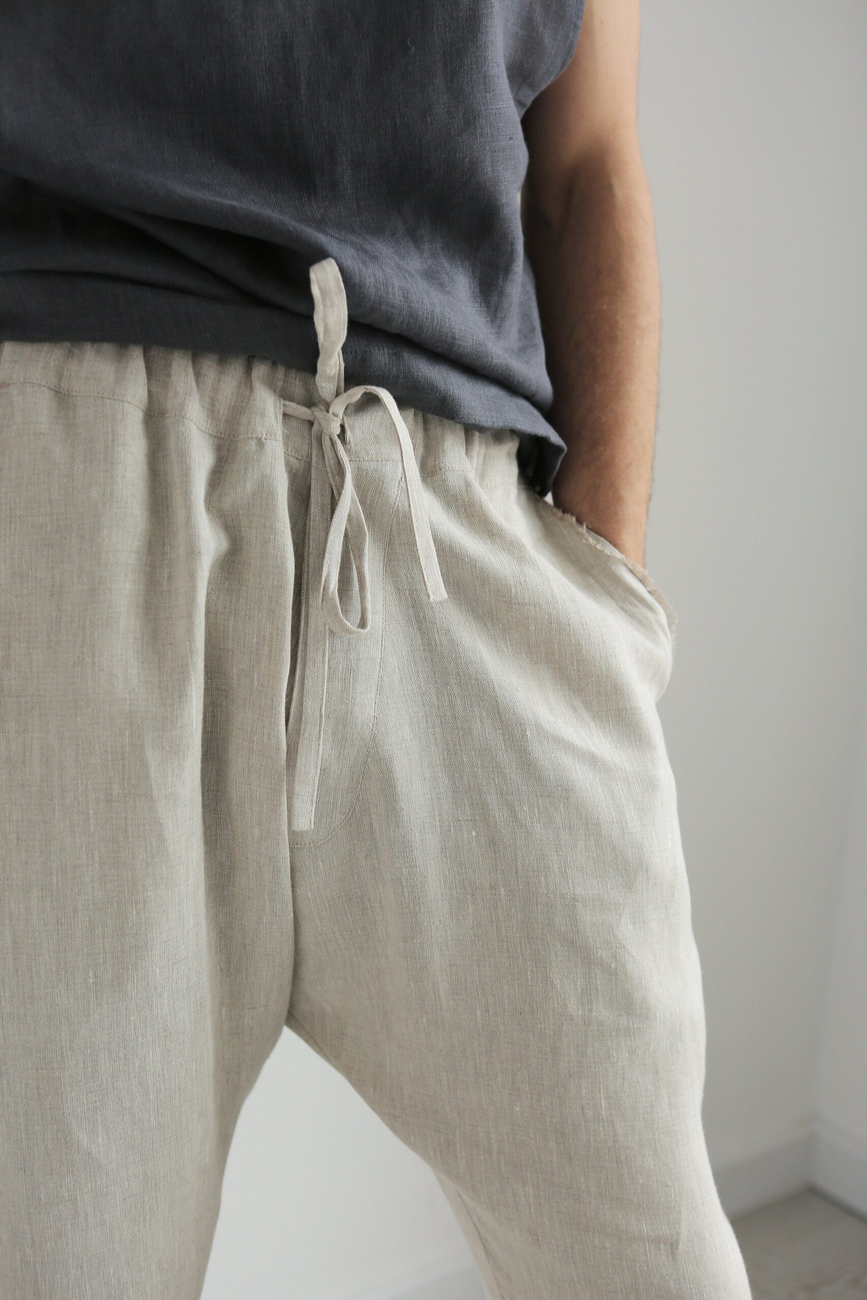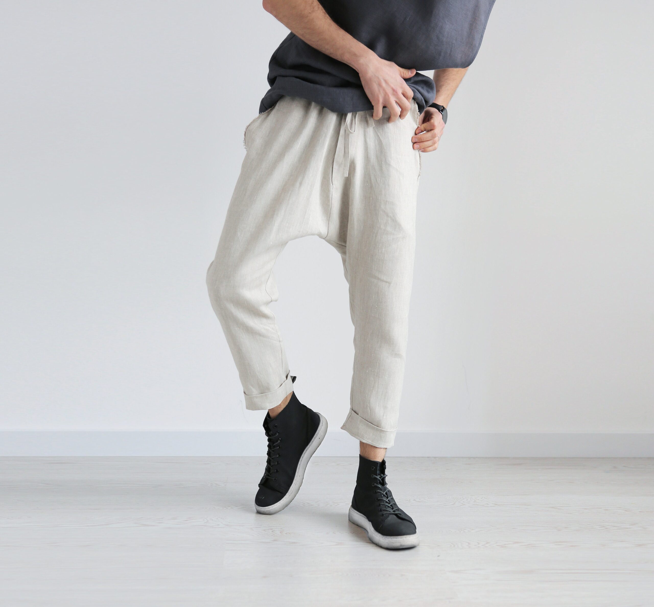 Baggy linen pants, harem men's pants.