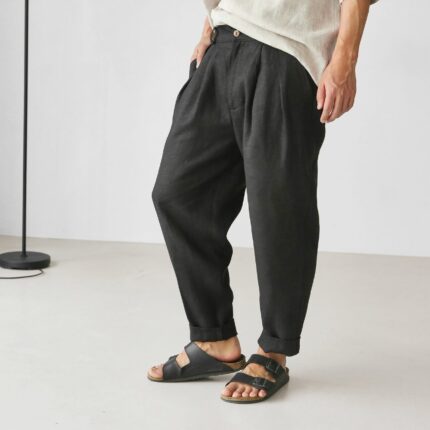 Tailored Linen Slacks Minimal Edge Linen for Men Loose Drape